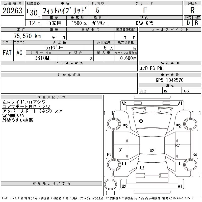 HONDA FIT HYBRID F - лот 20263