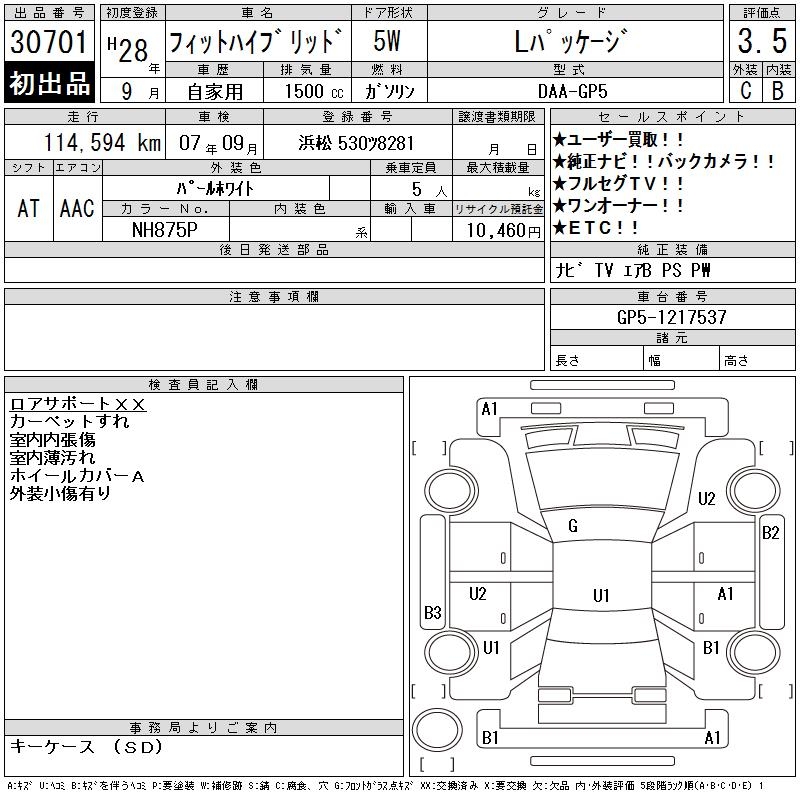 HONDA FIT HYBRID L PACKAGE - лот 30701