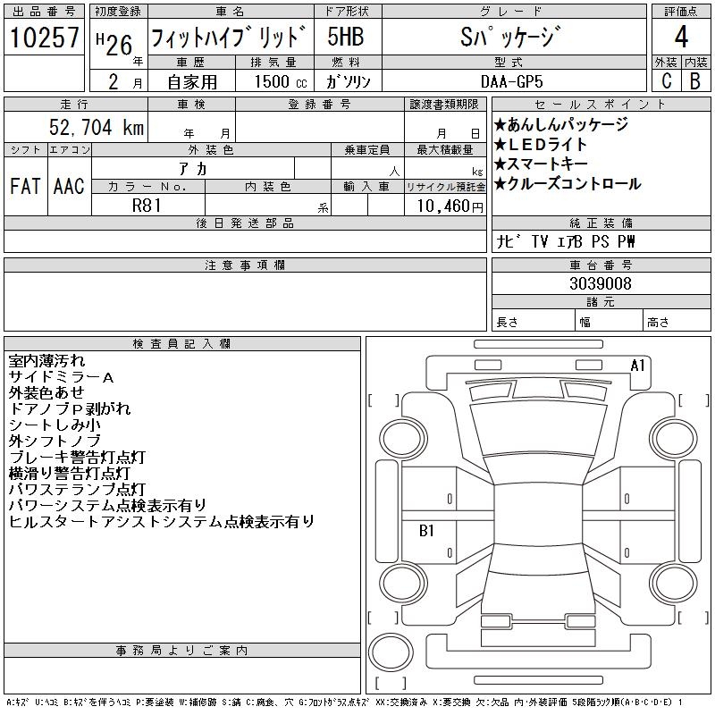 HONDA FIT HYBRID S PACKAGE - лот 10257