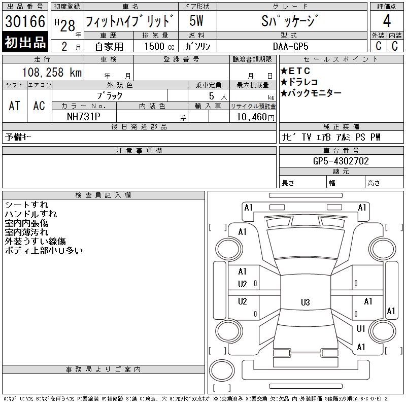 HONDA FIT HYBRID S PACKAGE - лот 30166