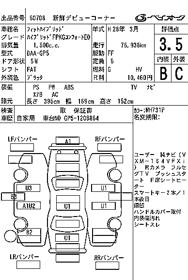 HONDA FIT HYBRID HYBRID FPKG COMFORT ED - лот 60708
