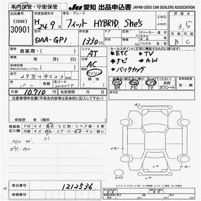 HONDA FIT HYBRID SHE'S - лот 30901