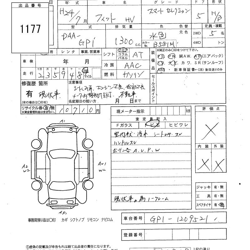 Все аукционы HONDA FIT HYBRID