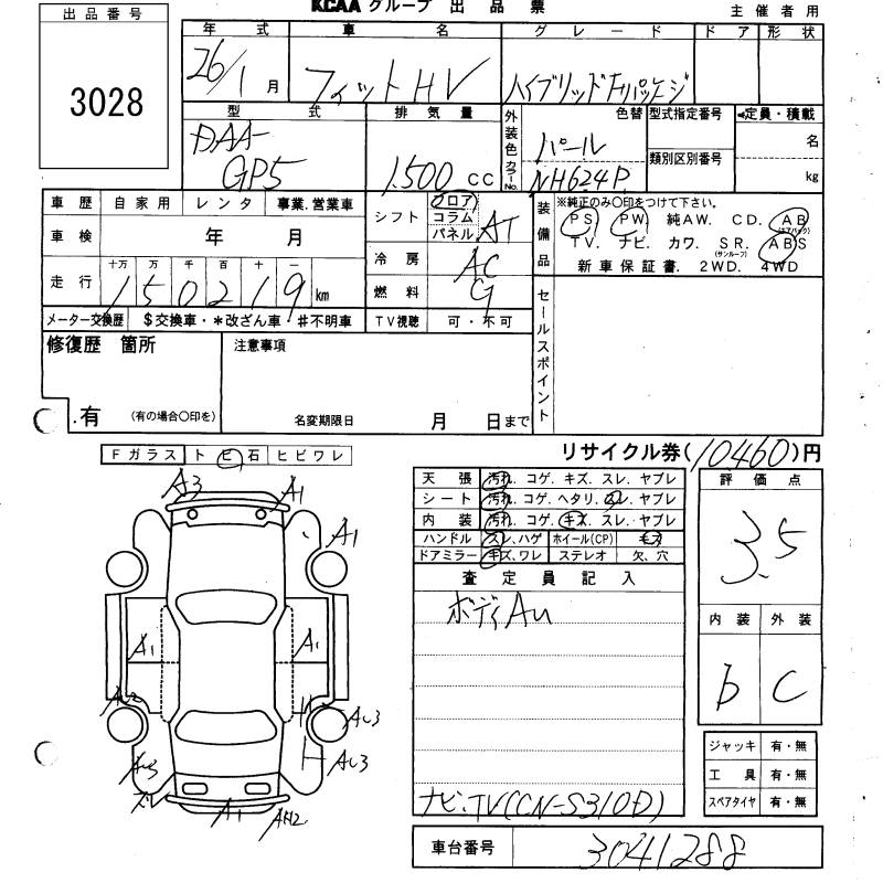 HONDA FIT HYBRID F PACKAGE - лот 3028