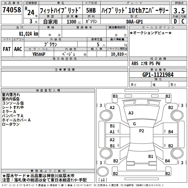 HONDA FIT HYBRID HYBRID 10TH ANNIVERSARY - лот 74058
