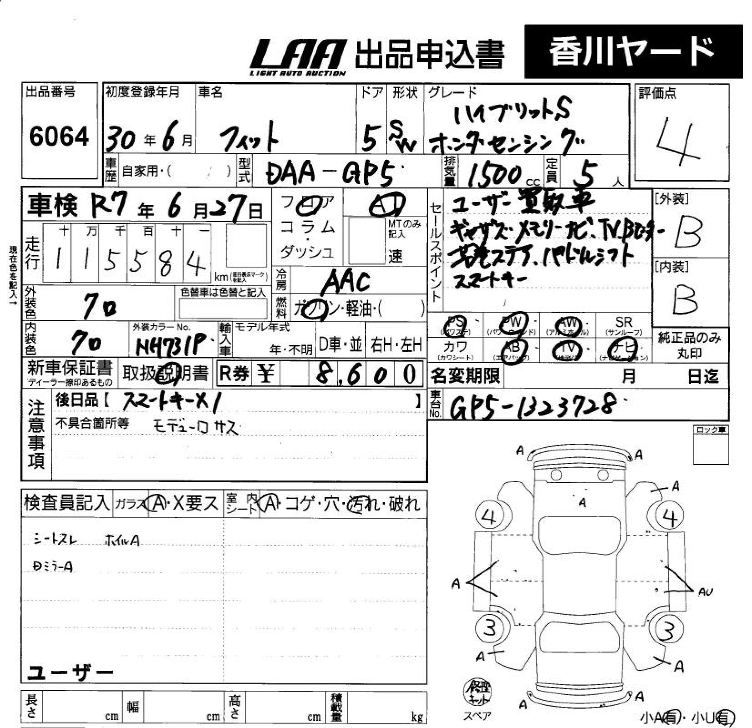HONDA FIT HYBRID HYBRID *S HONDA SENSI - лот 6064
