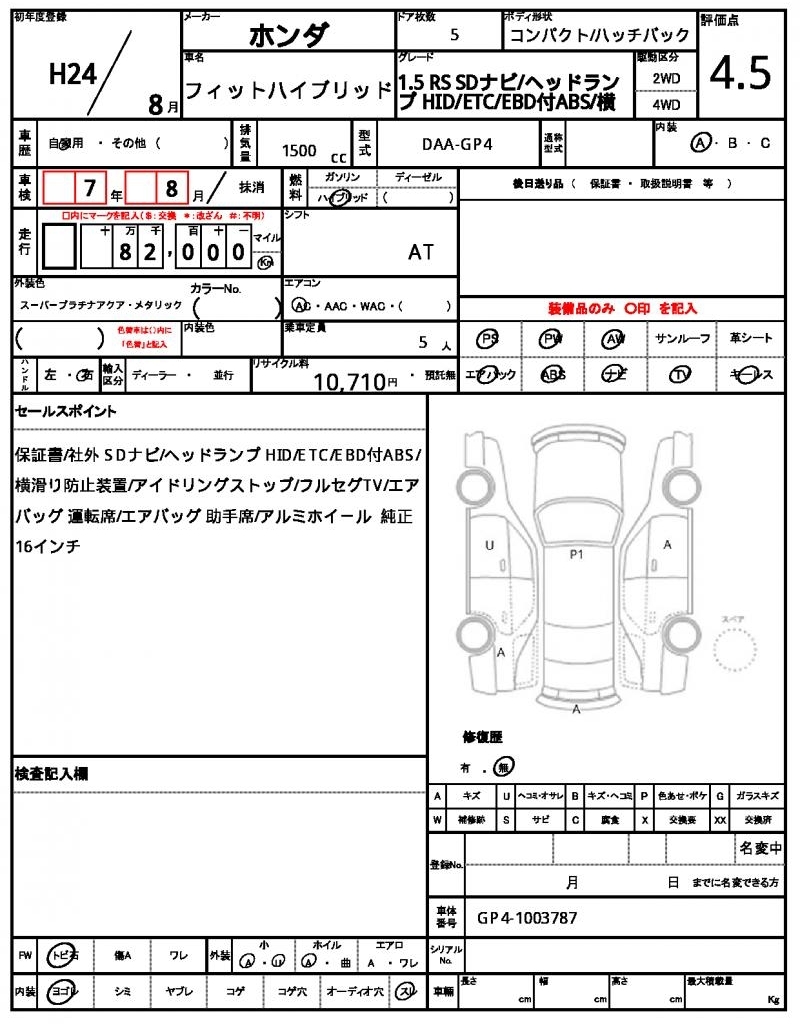 Все аукционы HONDA FIT HYBRID