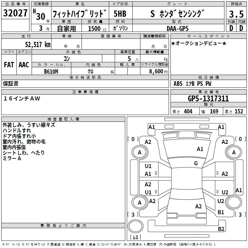 HONDA FIT HYBRID S HONDA SENSING - лот 32027