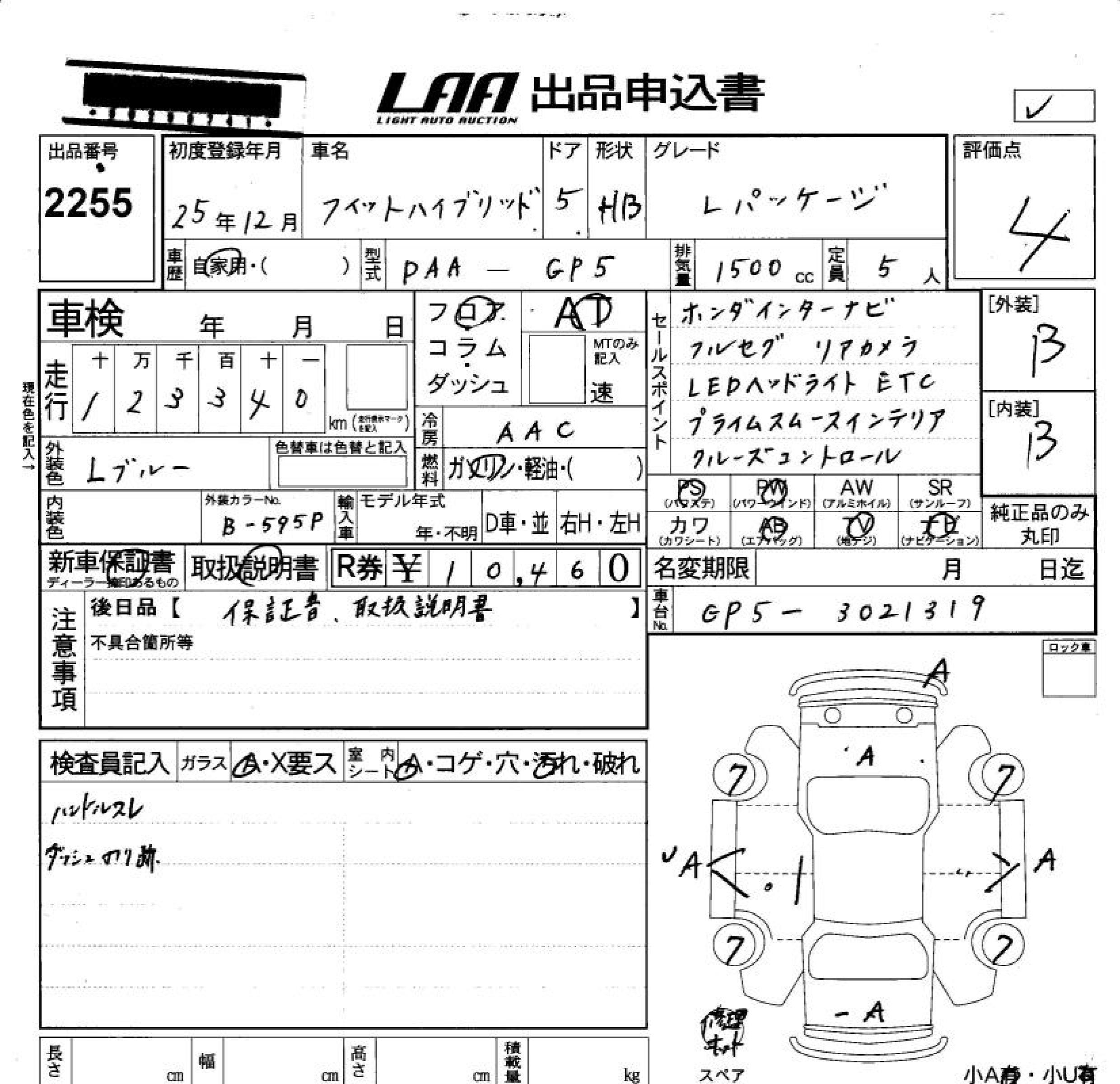 HONDA FIT HYBRID HYBRID *L PACKAGE - лот 2255