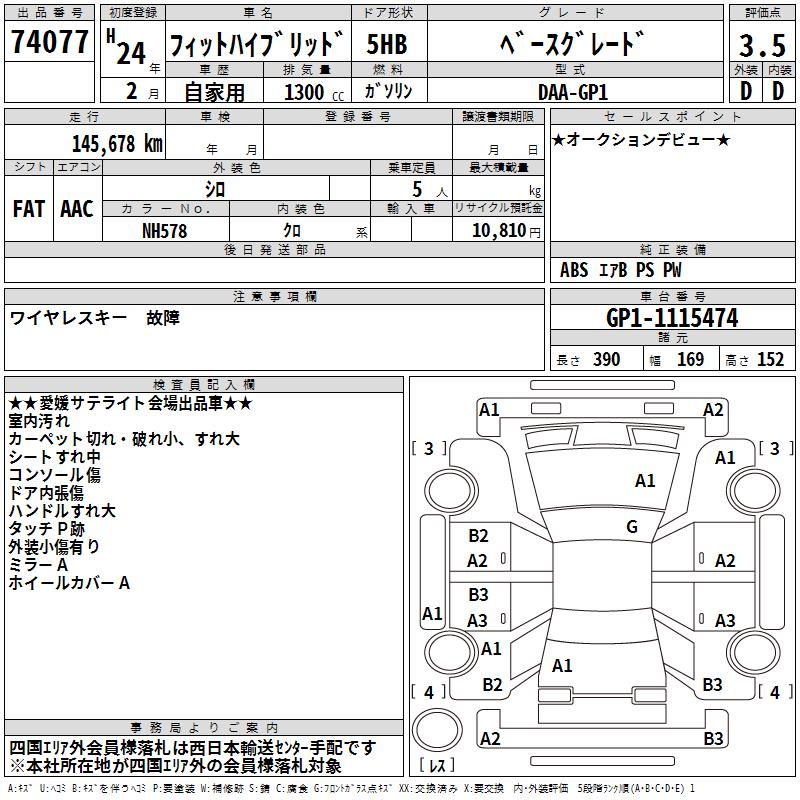 HONDA FIT HYBRID BASE GRADE - лот 74077