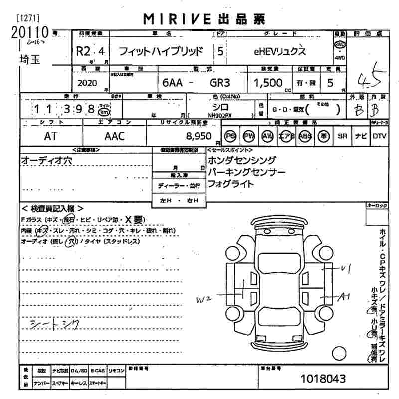 HONDA FIT HYBRID EHEVRYUKS - лот 20110