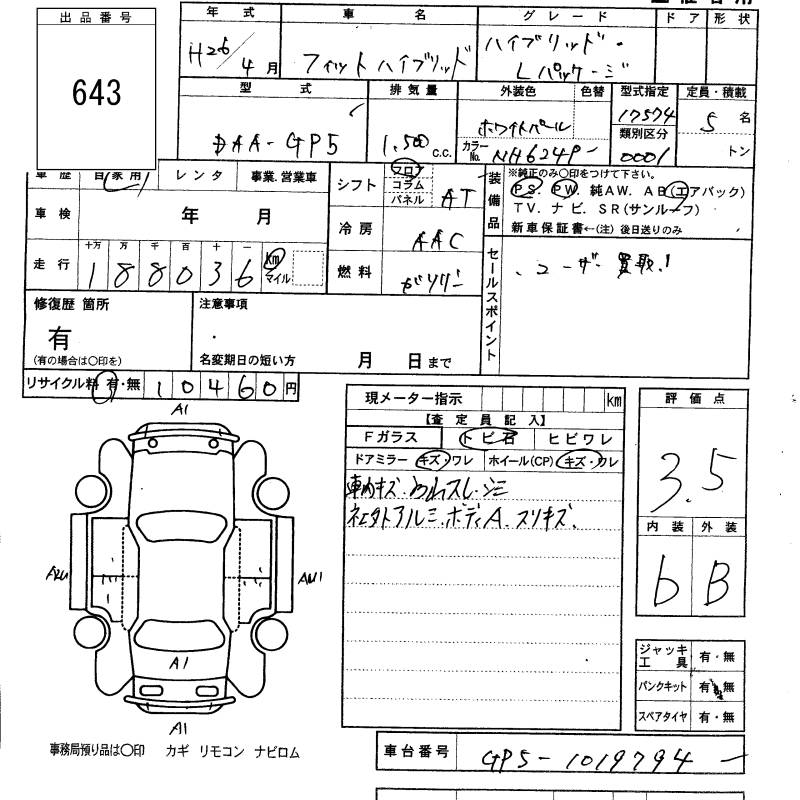 HONDA FIT HYBRID L PACKAGE - лот 643
