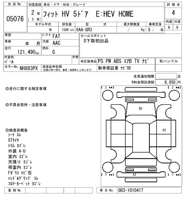 HONDA FIT HYBRID E:HEV HOME - лот 5076