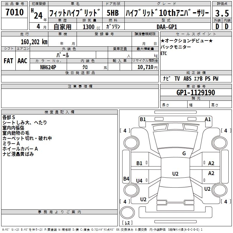 HONDA FIT HYBRID HYBRID 10TH ANNIVERSARY - лот 7010