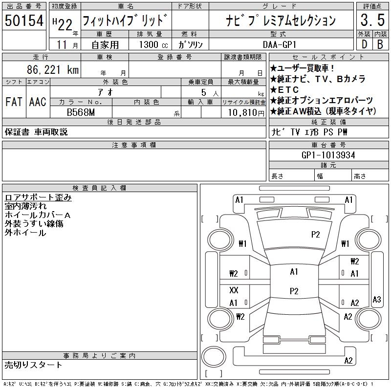 HONDA FIT HYBRID NAVIGATION PREMIUM SELECTION - лот 50154