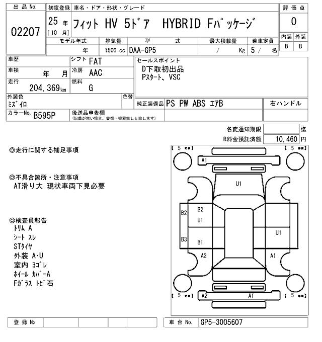 HONDA FIT HYBRID HYBRID F PACKAGE - лот 2207