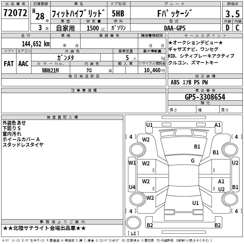 HONDA FIT HYBRID F PACKAGE - лот 72072