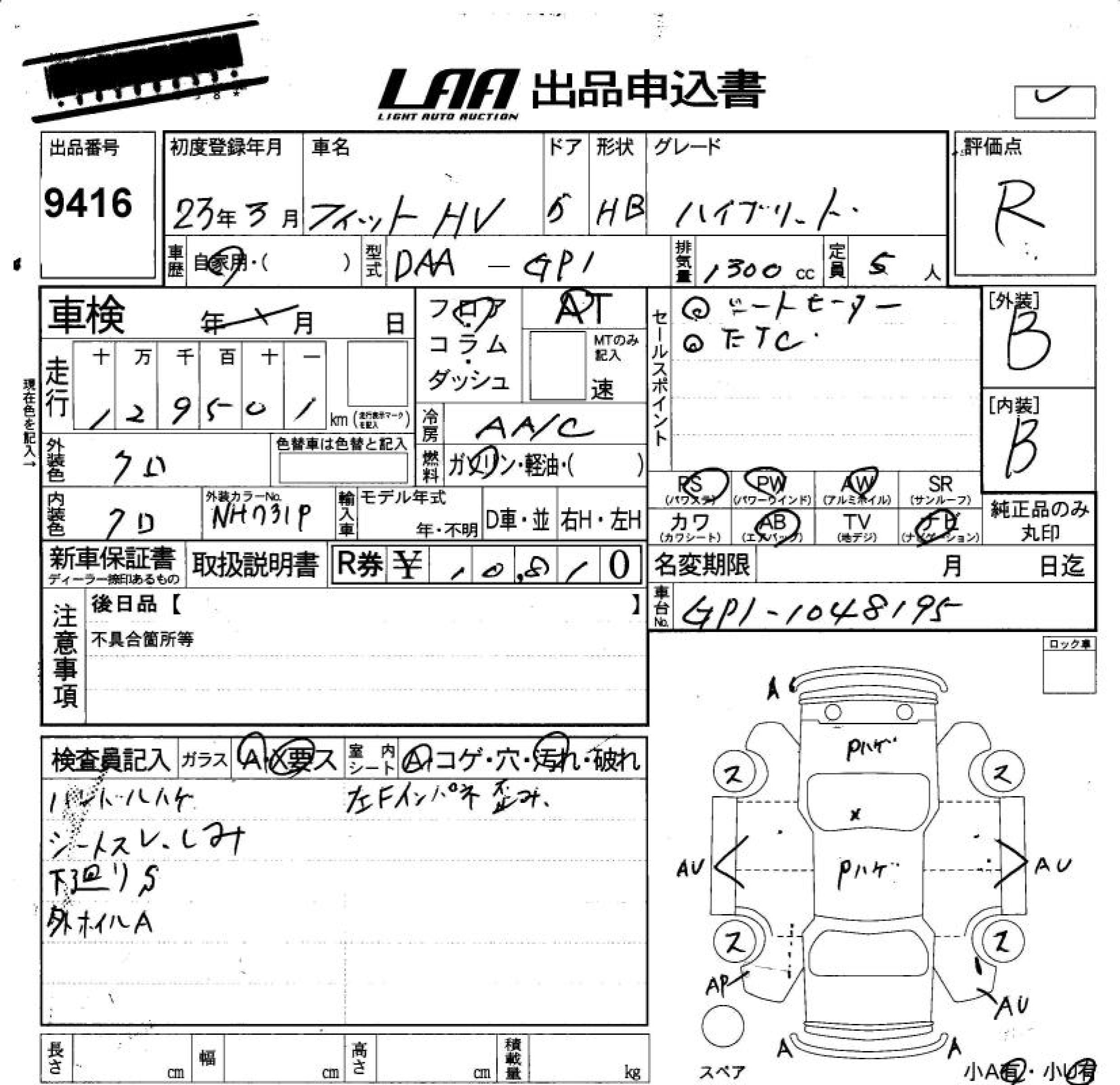 HONDA FIT HYBRID HYBRID - лот 9416