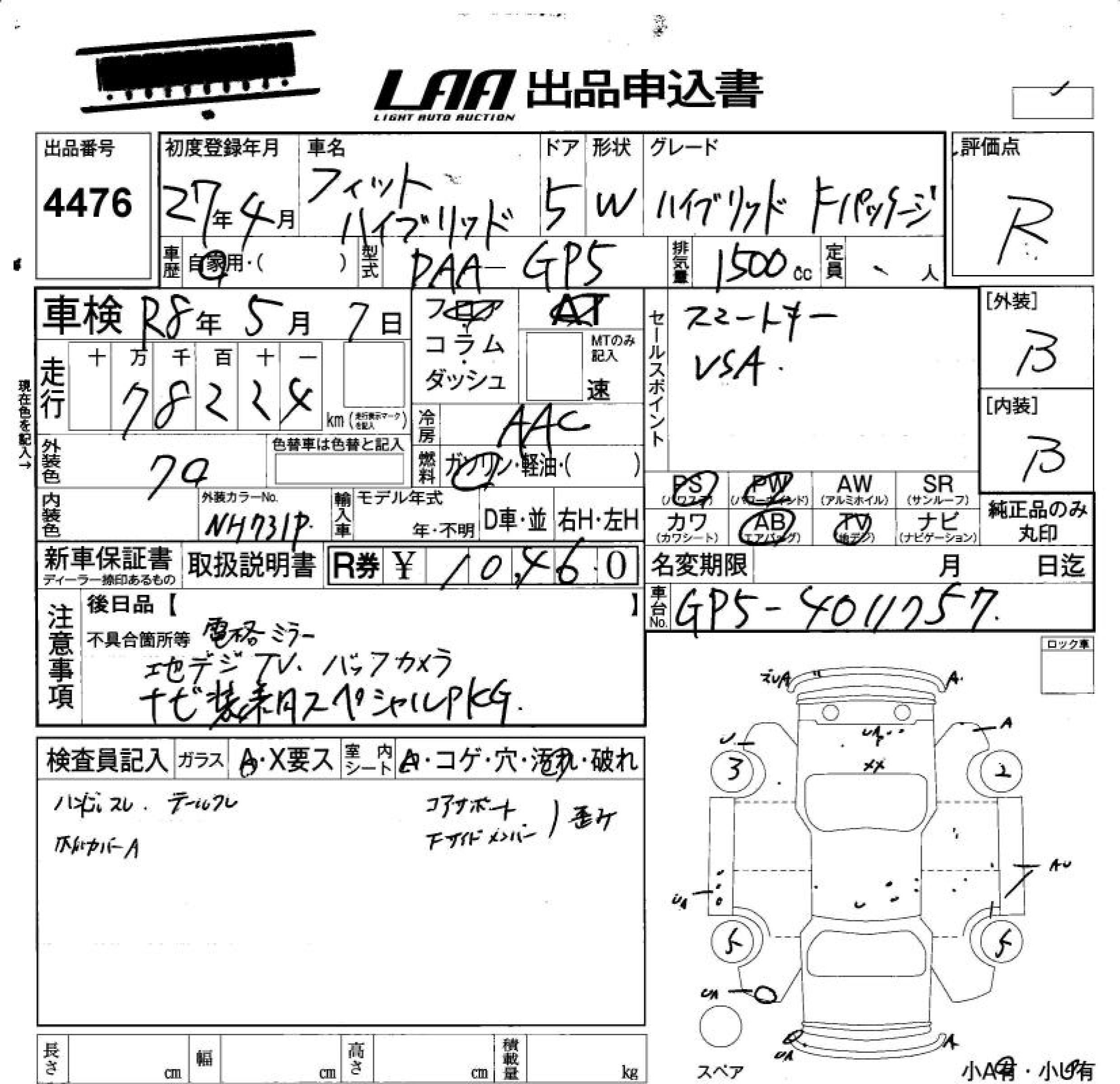 HONDA FIT HYBRID HYBRID *F PACKAGE - лот 4476