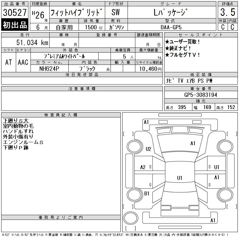 HONDA FIT HYBRID L PACKAGE - лот 30527