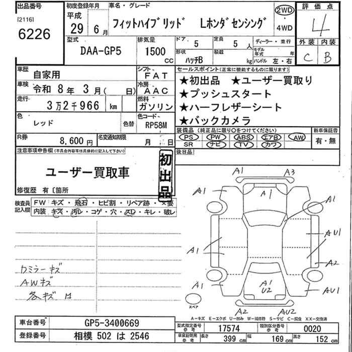HONDA FIT HYBRID L HONDA SENSING - лот 6226