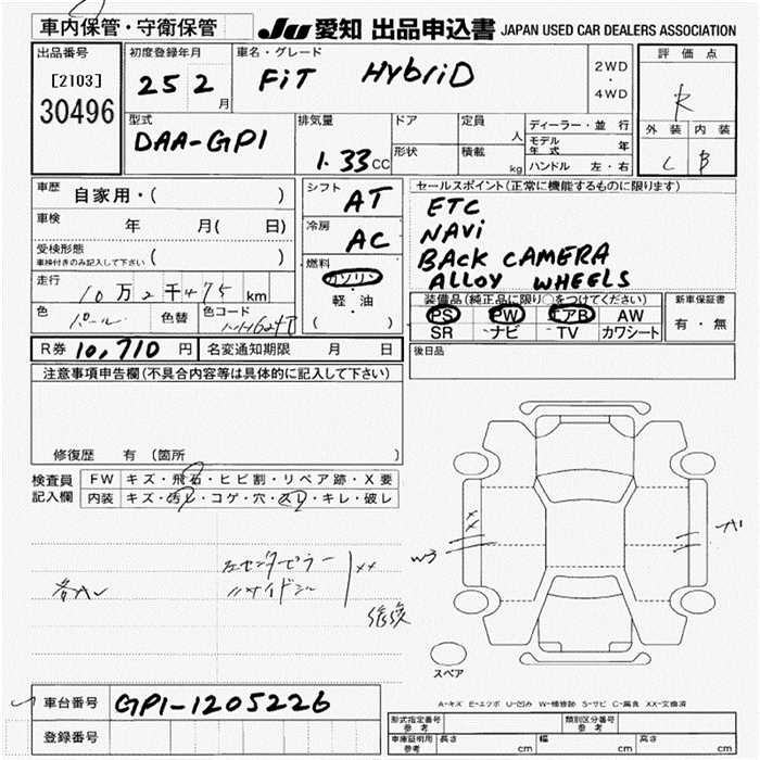 HONDA FIT HYBRID - лот 30496