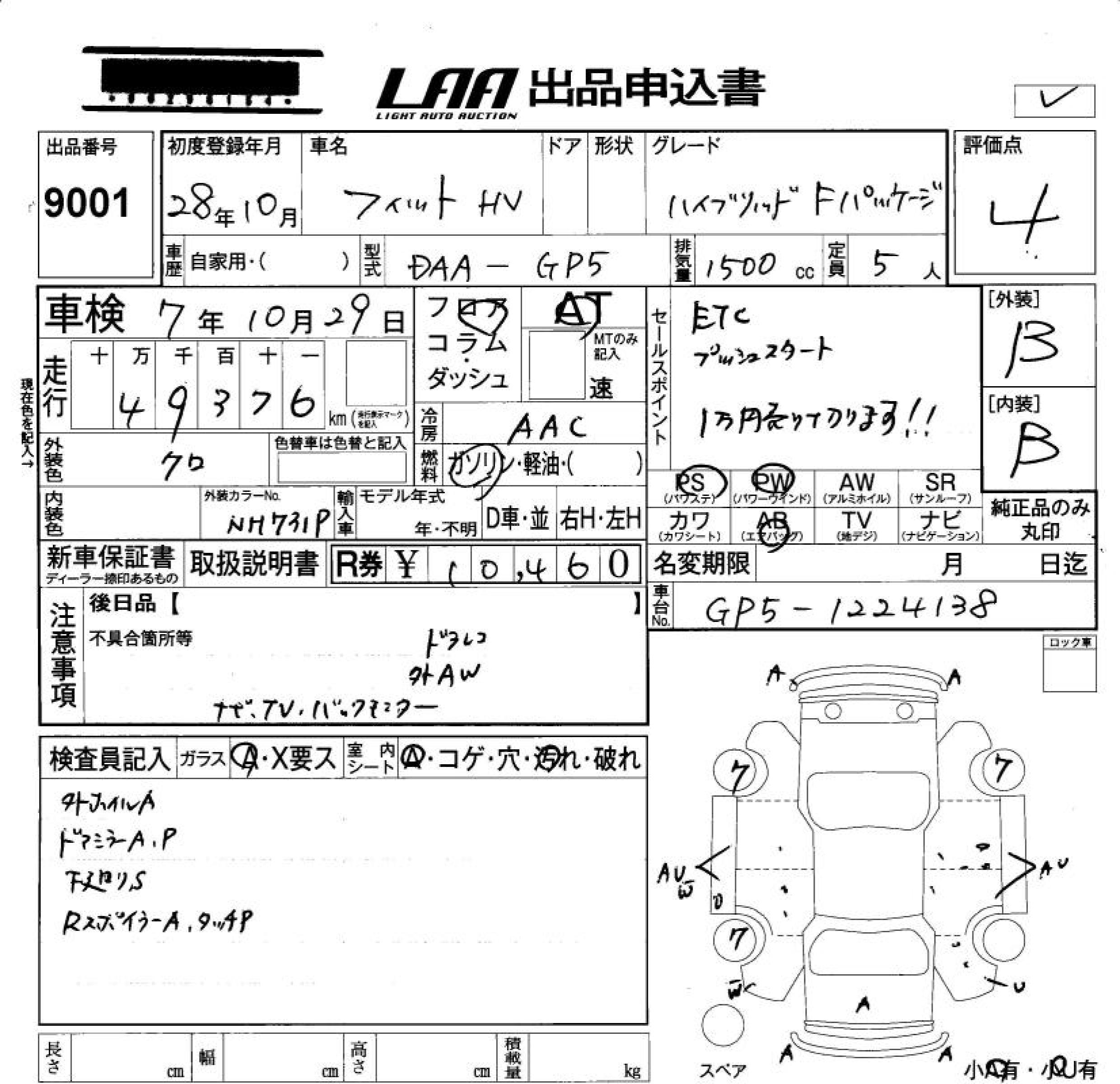 HONDA FIT HYBRID HYBRID *F PACKAGE - лот 9001