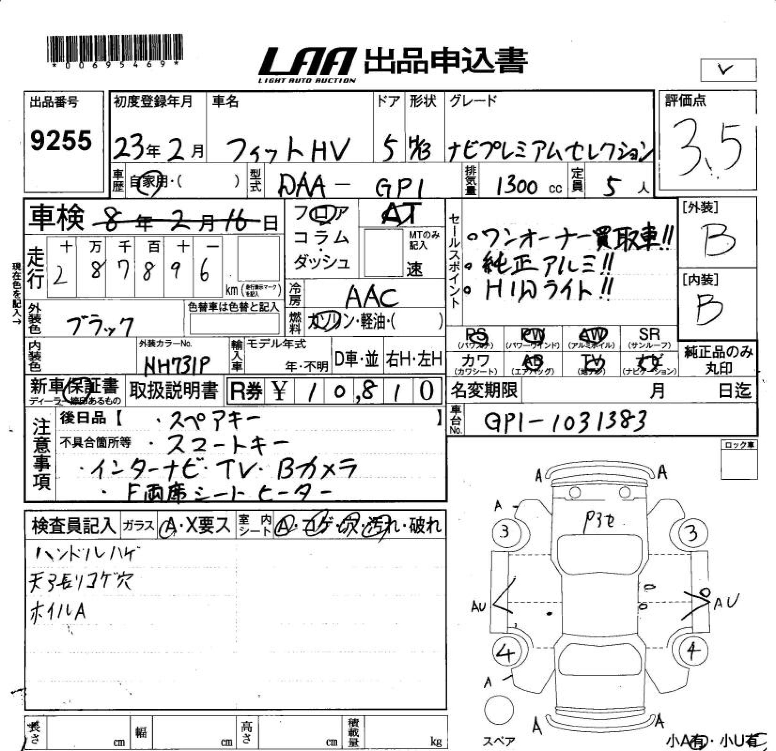 HONDA FIT HYBRID HYBRID * NAVIGATION PREMIUM SE - лот 9255
