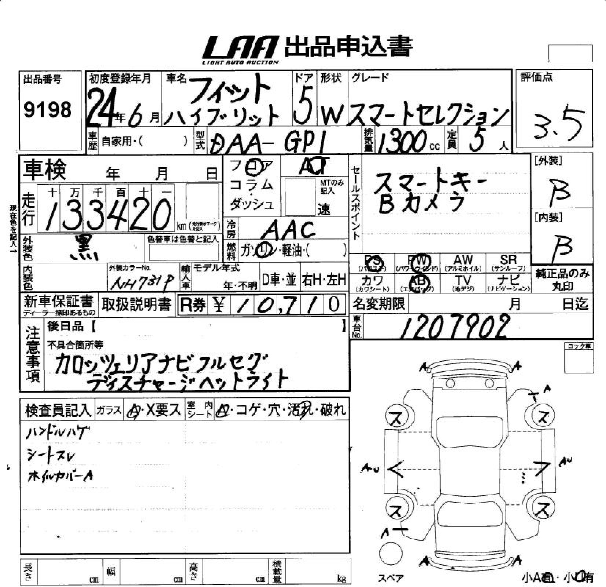 HONDA FIT HYBRID SMART SELECTION - лот 9198