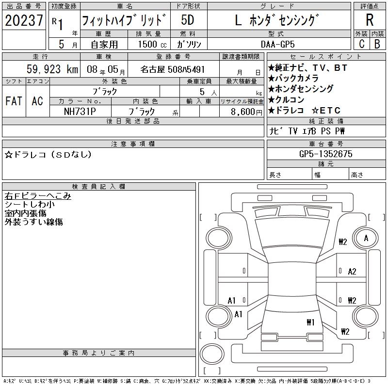 HONDA FIT HYBRID L HONDA SENSING - лот 20237