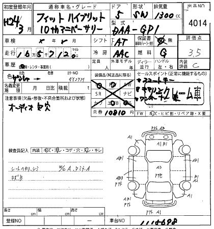 HONDA FIT HYBRID 10TH ANNIVER - лот 4014
