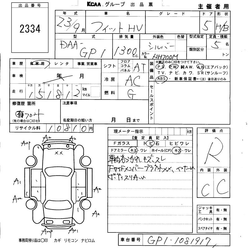 HONDA FIT HYBRID - лот 2334