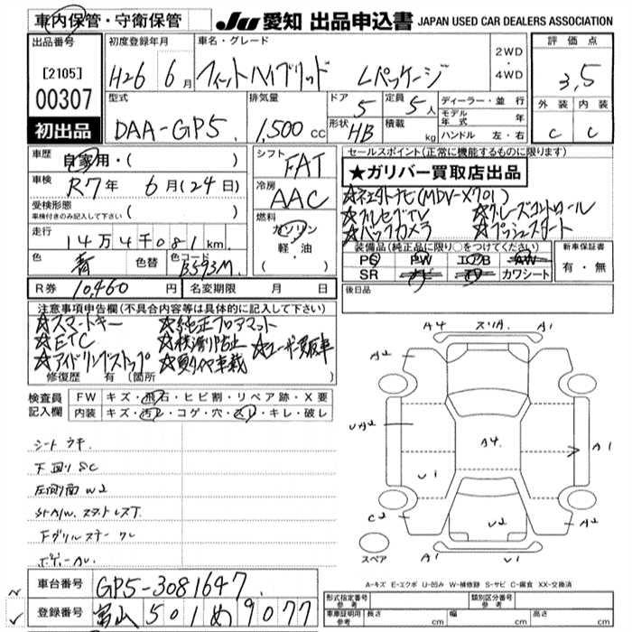 HONDA FIT HYBRID L PACKAGE - лот 307