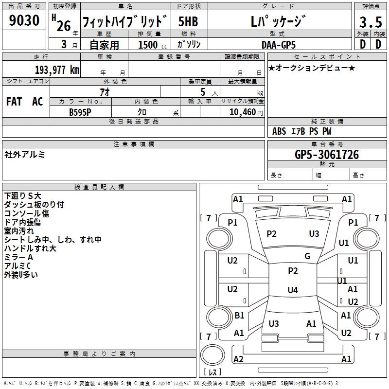HONDA FIT HYBRID L PACKAGE - лот 9030