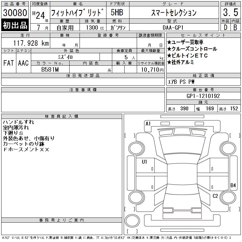 Все аукционы HONDA FIT HYBRID