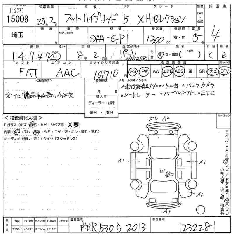 HONDA FIT HYBRID XH SELECTION - лот 15008