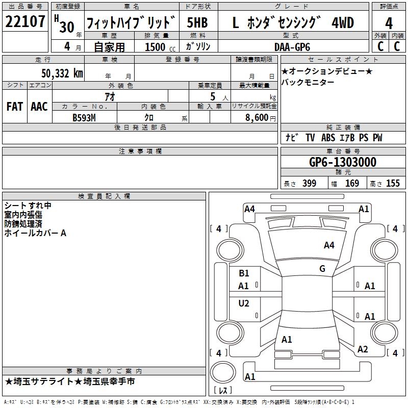 HONDA FIT HYBRID L HONDA SENSING4WD - лот 22107