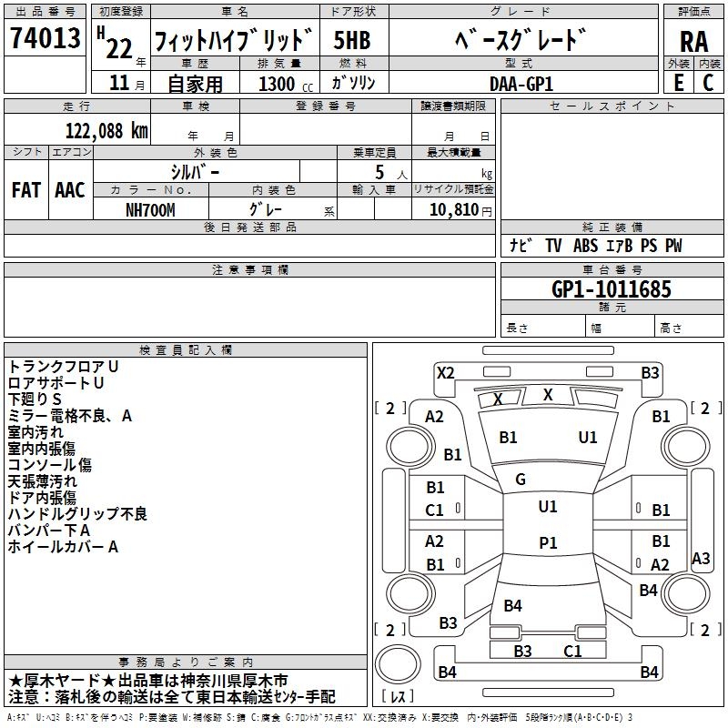 HONDA FIT HYBRID BASE GRADE - лот 74013