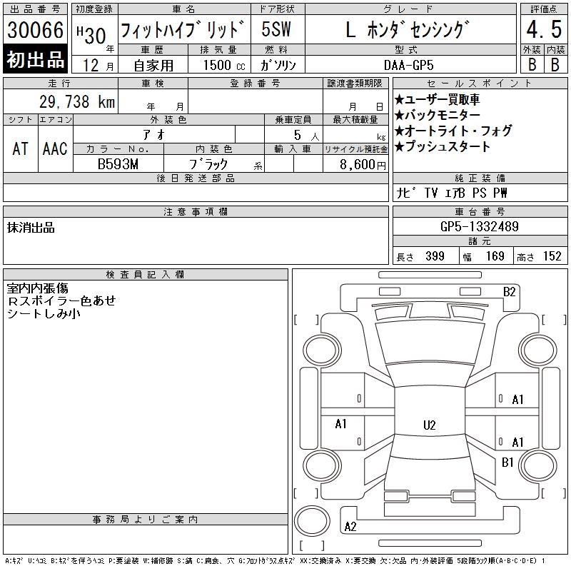 HONDA FIT HYBRID L HONDA SENSING - лот 30066