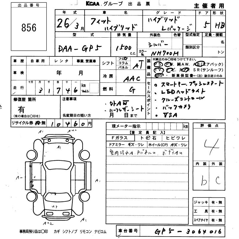 HONDA FIT HYBRID L PACKAGE - лот 856