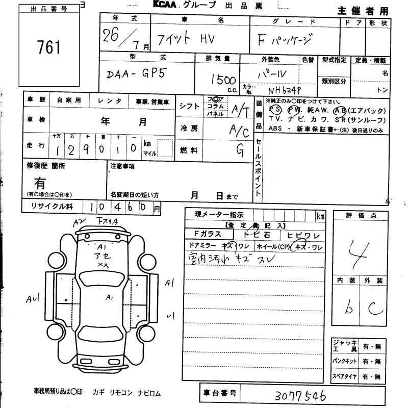 HONDA FIT HYBRID F PACKAGE - лот 761