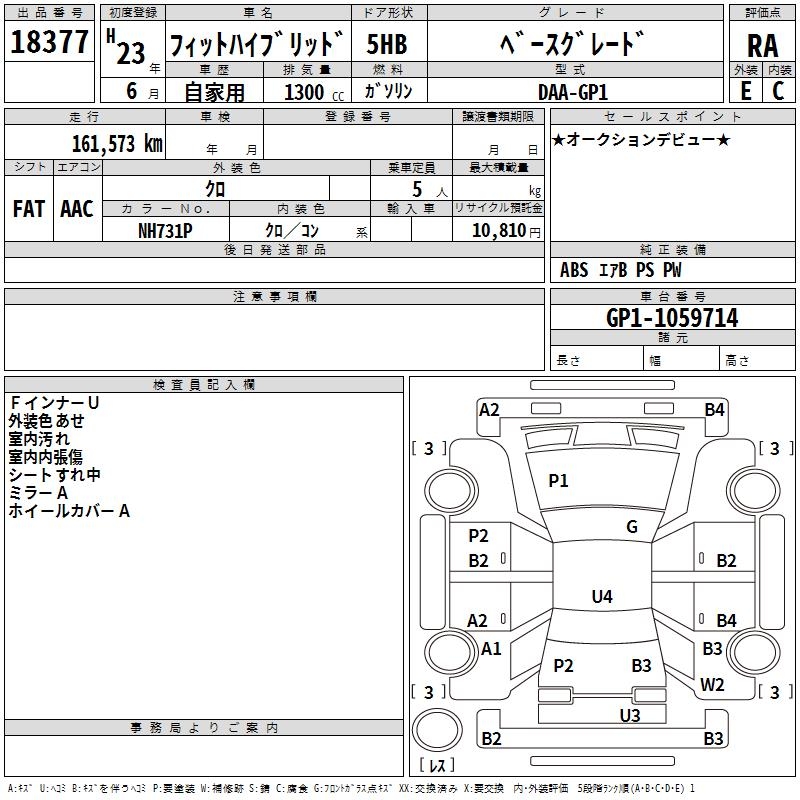 HONDA FIT HYBRID BASE GRADE - лот 18377