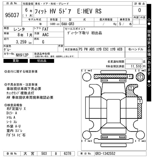 HONDA FIT HYBRID E:HEV RS - лот 95037