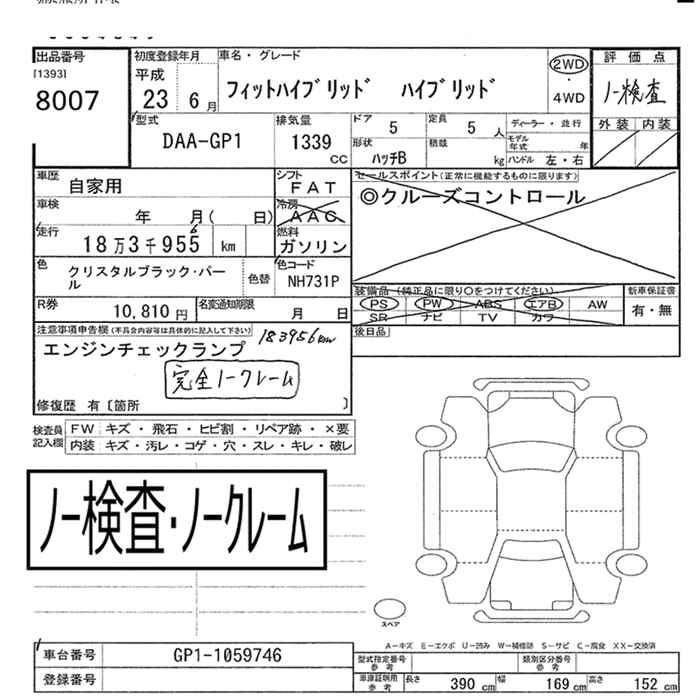 HONDA FIT HYBRID HYBRID 2WD - лот 8007