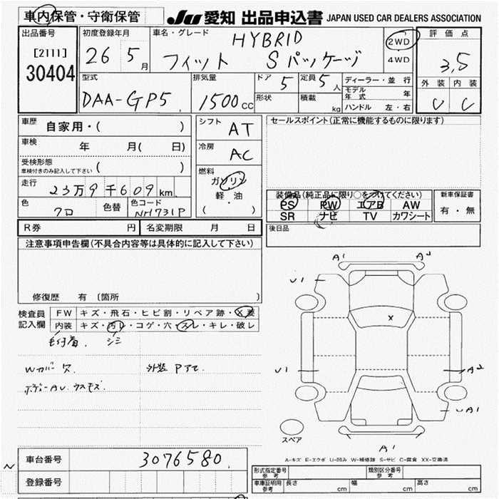 HONDA FIT HYBRID S PACKAGE - лот 30404