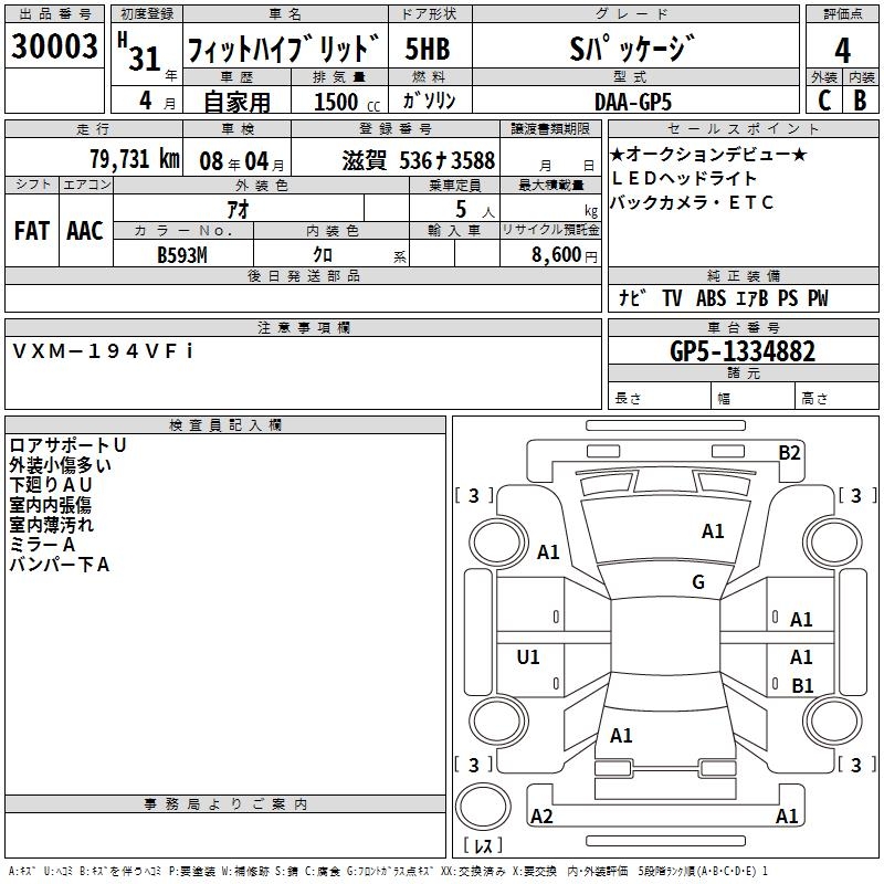 HONDA FIT HYBRID S PACKAGE - лот 30003