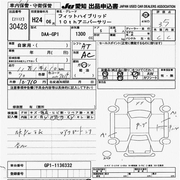 HONDA FIT HYBRID 10TH ANNIVERSARY - лот 30428