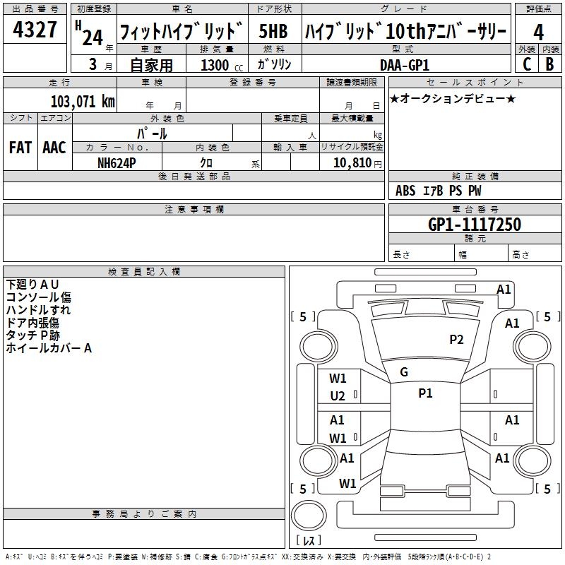 HONDA FIT HYBRID HYBRID 10TH ANNIVERSARY - лот 4327