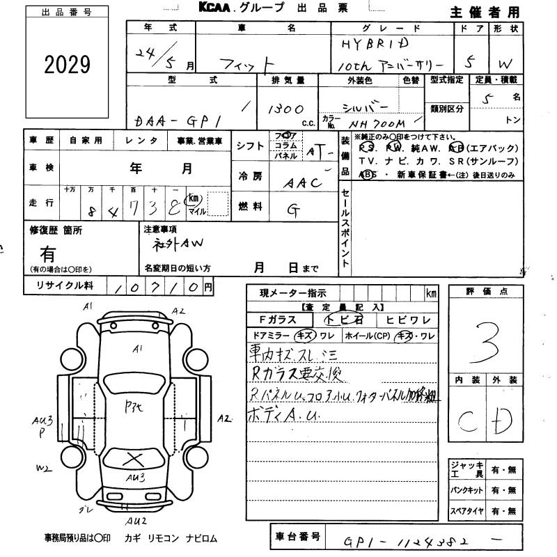HONDA FIT HYBRID HYBRID *10TH ANNIVERSARY - лот 2029