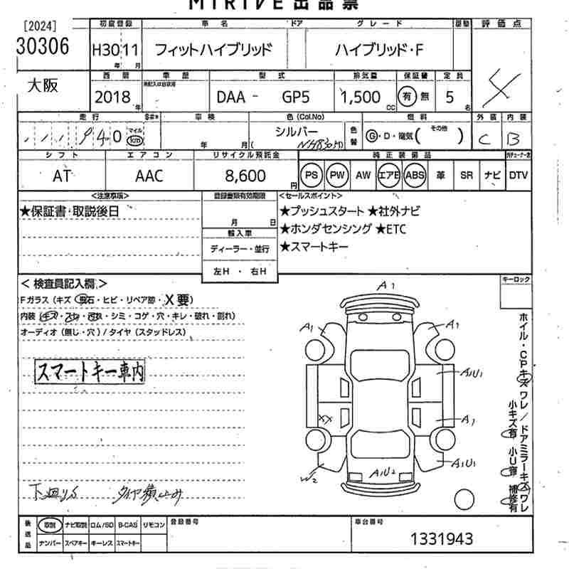 HONDA FIT HYBRID - лот 30306